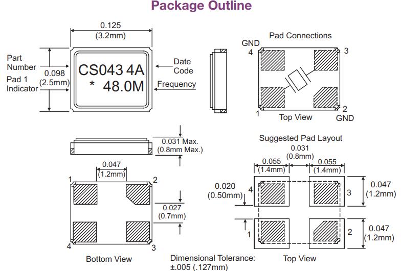 CS-043-048.0M,48MHz,Connor-Winfield晶振,3225mm,尺寸图