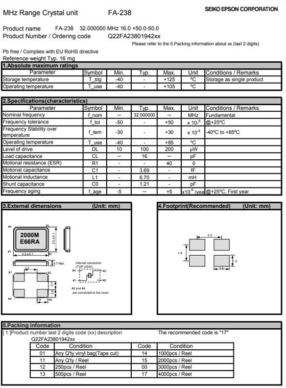 爱普生晶振编码