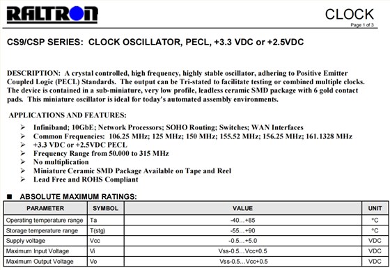 CS9系列有源振荡器,拉隆以太网晶振,CS9420A-LZ-125.000参数表