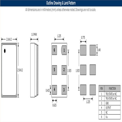 | SQG22C3C16-8.000M-250.000M | 松图晶振 | 2.5X2.0 CERAMIC SMD (6 PAD) OSCILLATOR | CMOS | 1.5ps | 3.3V±5% | ±25ppm | -10℃ - +60℃ | 8.000M-250.000M |