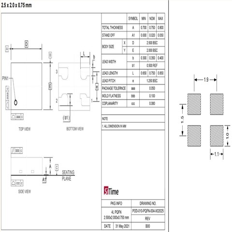 SiTime可编程晶振,SiT1408BI-11-18N-50.000000D,6G网络晶振尺寸图